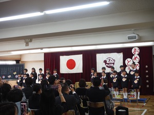 さくら組とばら組で花道を作り、つき組を拍手で送り出しました。